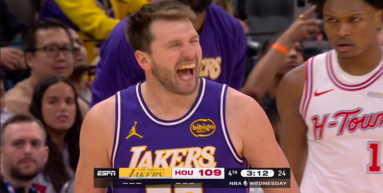 这就叫超级巨星!东契奇转身三分手起刀落 湖人领先4分打停火箭
